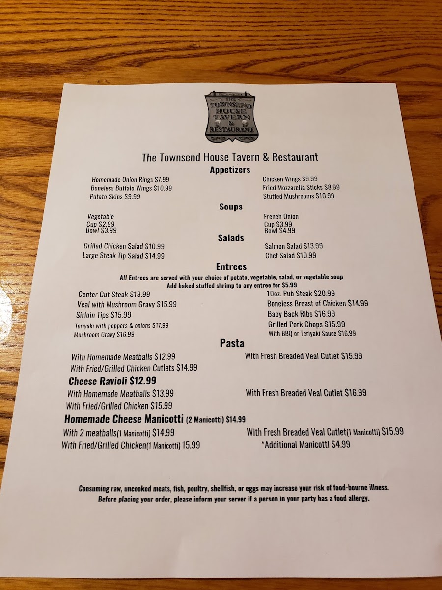 Meals here complement the friendly, down-to-earth atmosphere of Townsend House, where the décor and local touches provide a welcoming backdrop to enjoy straightforward, flavorful food. The bar menu likewise offers approachable picks like boneless wings and cold beers, suited for unwinding and casual conversation in the evening.